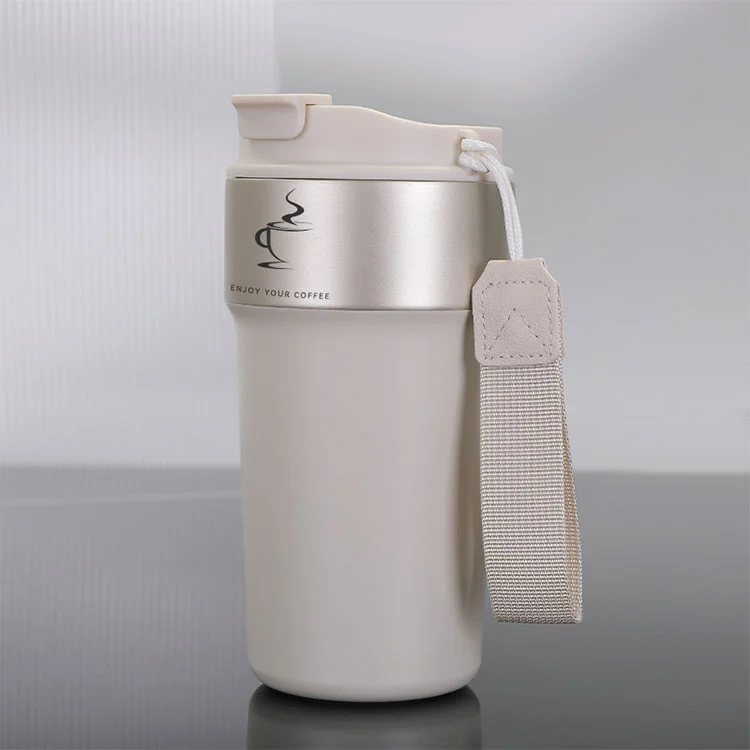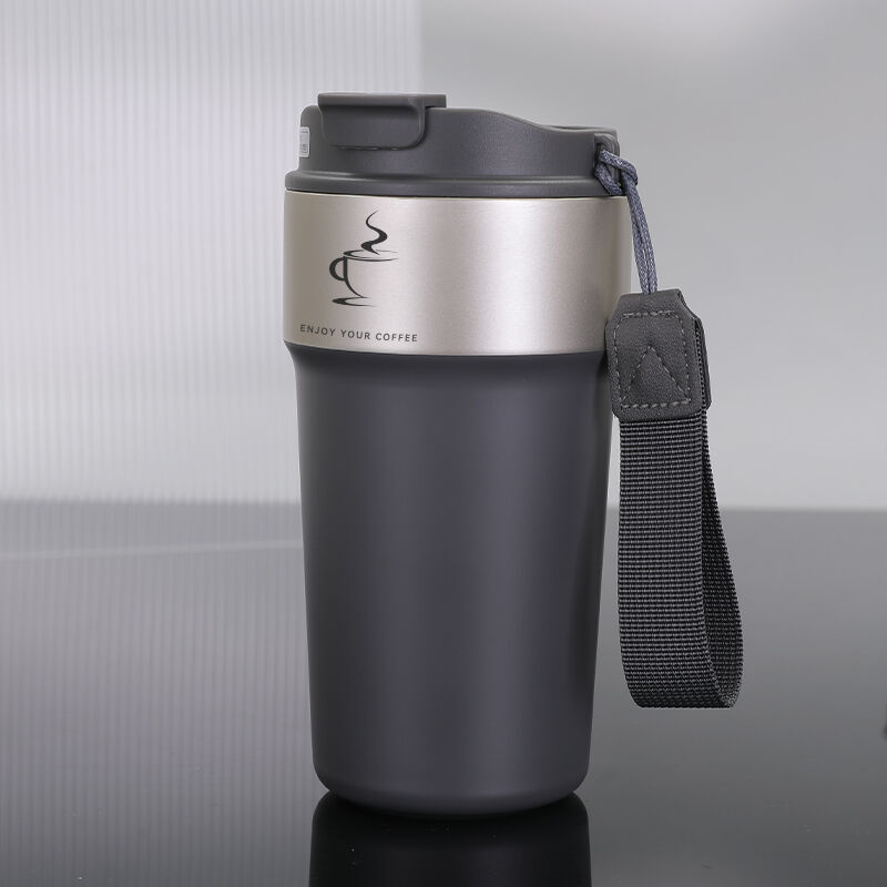316 nerūdijančio plieno vidinio ir 304 nerūdijančio plieno išorinio ir PP dangtelio medžiaga su silikono šiaudais sudaro kavos puodelį su dangčiu.