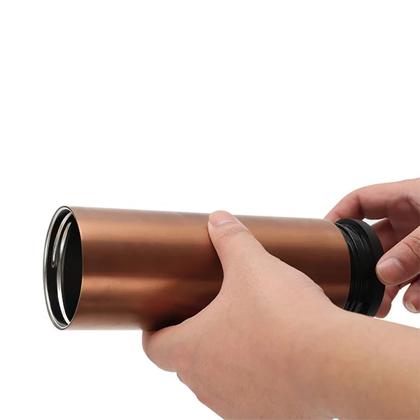 Šis puodelis yra naujos koncepcijos nerūdijančio plieno izoliuotas puodelis. Nors tai įprastas termosas, jo dizainą galima transformuoti į du atskirus termoso puodelius. Taip, tai vakuuminis nerūdijančio plieno termosas. Vienas yra pagrindinis puodelis, kurio talpa yra 600 ml, o kitas yra 450 ml puodelis.