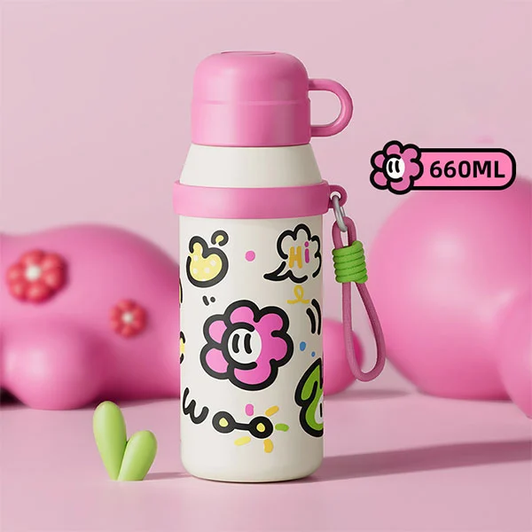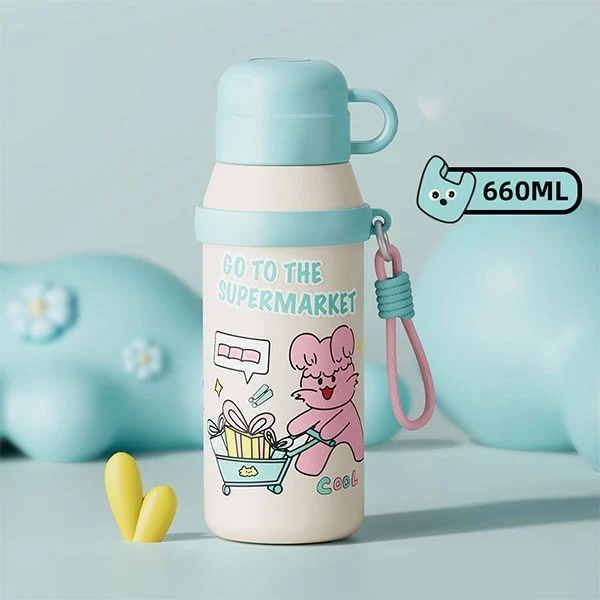 6600 ml vaikų nerūdijančio plieno vandens butelio šilumos izoliacijos nuotėkio atspari mielas puodelis