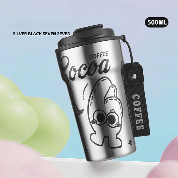 Tai yra nerūdijančio plieno vakuuminė kavos puodelis, turintis aukštą išvaizdą.