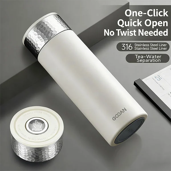 Ji yra dviguba sienele ir vakuumine izoliacija, vidinė dalis yra iš 316 nerūdijančio plieno, pasižymi geresniu antibakteriniu poveikiu ir mažesniu elementų išsiskyrimu. Išorinė siena yra 304 nerūdijančio plieno, kuris yra tradicinė maistinė medžiaga.