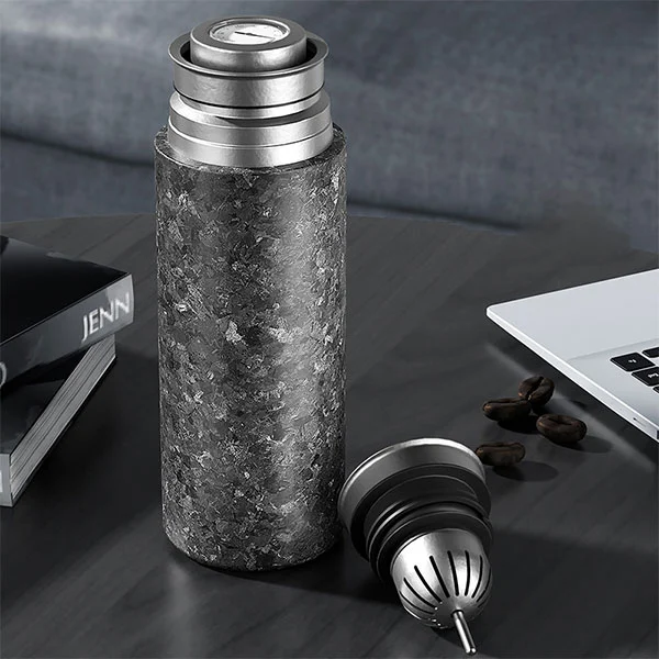 Tai titano vandens butelis su magnetiniu dangčiu, pagamintu iš titano, aviacijos medžiagos, kurios talpa yra 410 ml. Jis turi pagrindines įprastos termoso taurės funkcijas: vakuuminio šilumos išsaugojimą ir šalčio išsaugojimą. Šaltas konservavimas gali trukti 6 valandas, o šilumos išsaugojimas gali trukti 4 valandas.