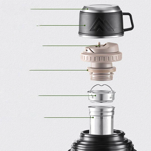 Ši kelionių kolba su ypač aukščiausio lygio šaltos izoliacijos veikimu yra pagaminta iš dvigubo sluoksnio nerūdijančio plieno, kurio vidinis įdėklas ir išorinė siena yra dengta. Jo vakuumo greitis yra 99,8%, efektyviai sumažinantis šilumos perdavimą ir užtikrinant nuolatinę šilumos ir šalčio izoliaciją.