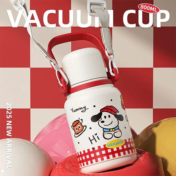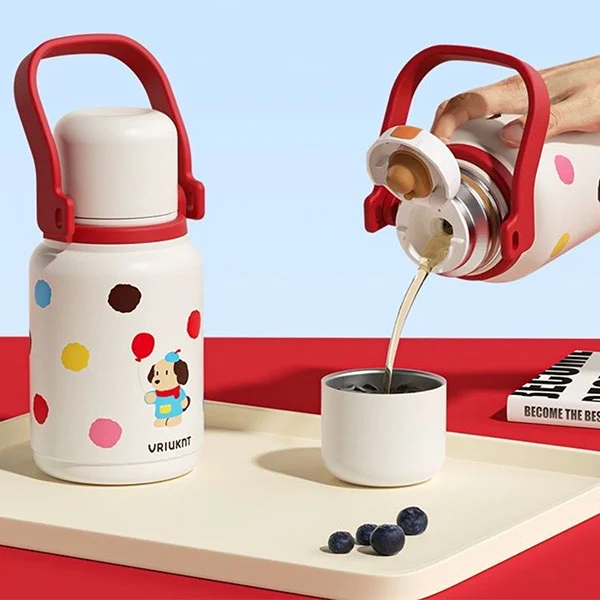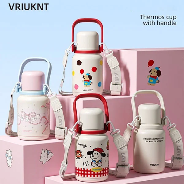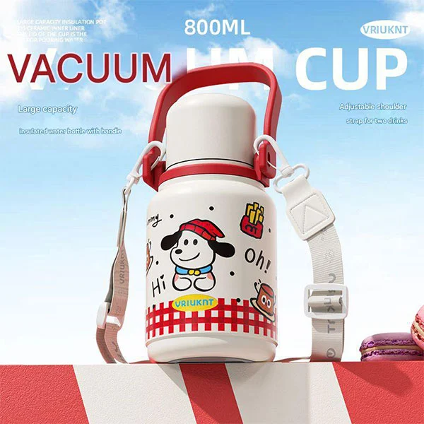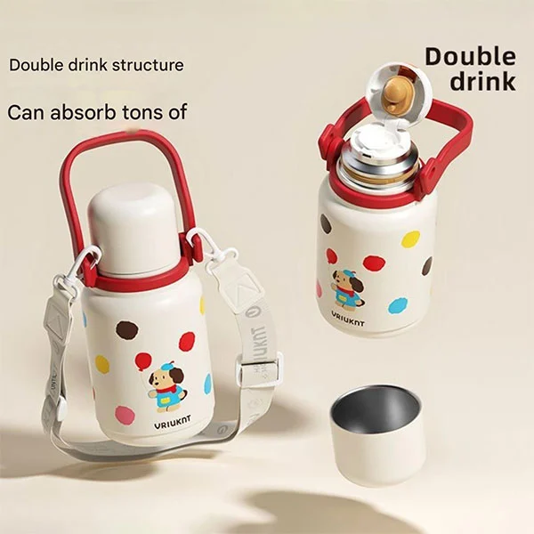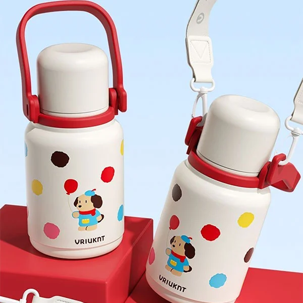 Izoliuotą vakuuminę kolbą galima naudoti kaip privalomą vandens buteliuką vaikams eiti į mokyklą ar keliones, o tai labai tinka vaikams, nes jų rankos mažos, o dirželiai gali atlaisvinti rankas