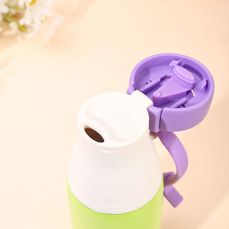 304 nerūdijančio plieno vakuuminės izoliacijos buteliukas priklauso dopamino pieno buteliams su apvaliu dangteliu, kurį galima lengvai atidaryti traukiant ir užrakinti tik paspaudus, kad netyčia neatsidarytų butelio dangtelis.